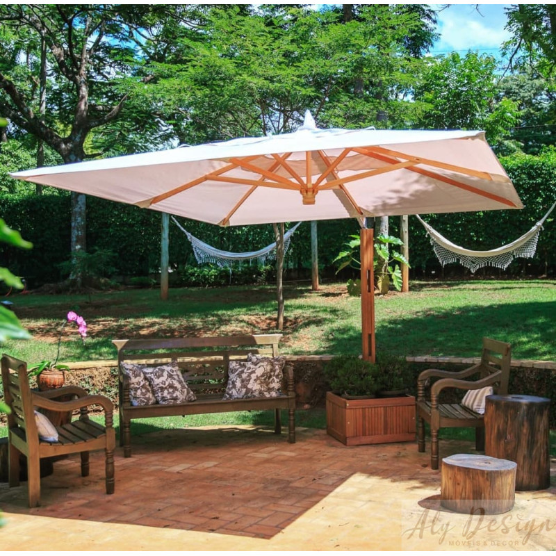 Ombrelone Quadrado 3,50 x 3,50m em Madeira Giratório com Floreira