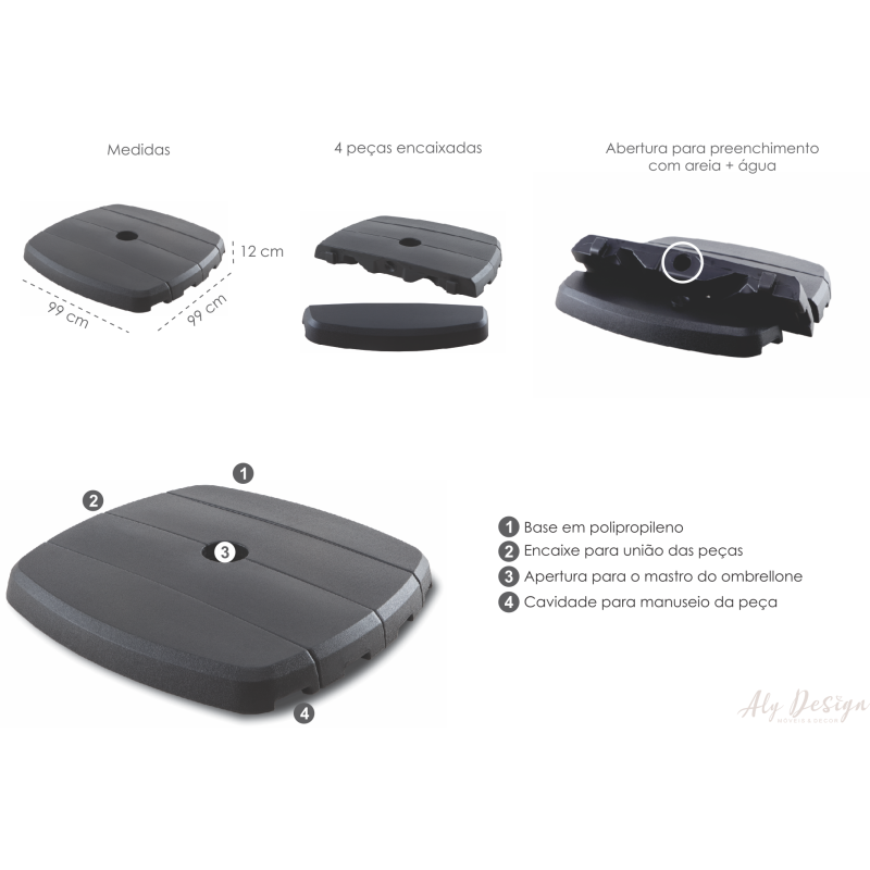 | Contém | 01 Ombrelone + 01 Base Desmontável |