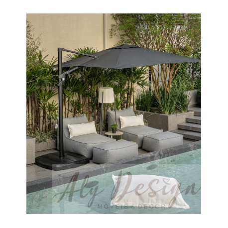 | Descrição | Ombrelone Quadrado com proteção solar UFP+50, mastro lateral, possui inclinação lateral e frontal, gira 360 graus |